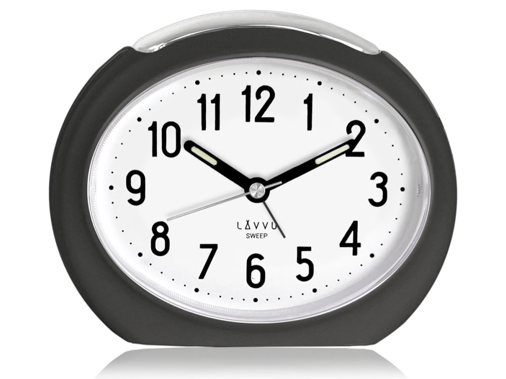 LAVVU Černý budík SWEEP s plynulým chodem - 3 ROKY ZÁRUKA!