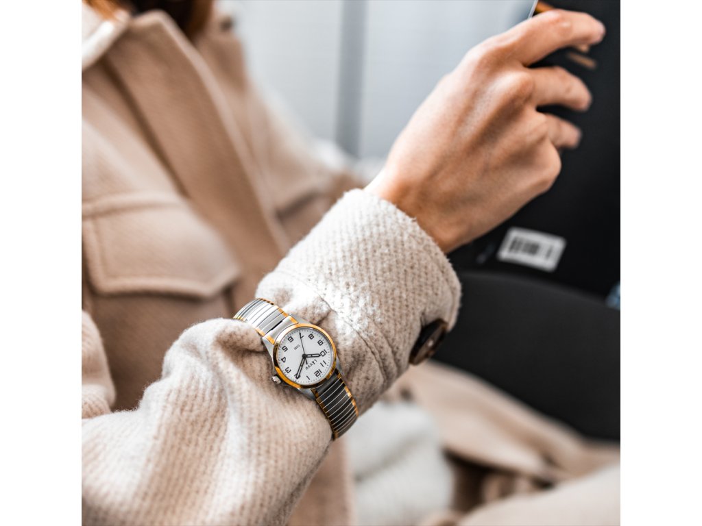 Pružné hodinky nemusíte rozepínat. Jednoduše je přetáhnete přes zápěstí, což oceníte především při práci. S městem Stockholm mají tyto hodinky společné přízvuky – spolehlivý, praktický, tradiční, funkční a inovativní v detailu, jak dokazuje spona SMART-FLEX, umožňující jednoduché zkrácení pásku, klidně i u vás doma bez použití hodinářského náčiní. Dámský model působí i přes všechnu praktičnost velmi elegantně. Hodinky jsou vyrobeny z nerezové oceli, díky níž zvládnou i náročnější situace.Doplňkové parametry