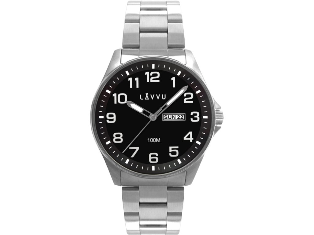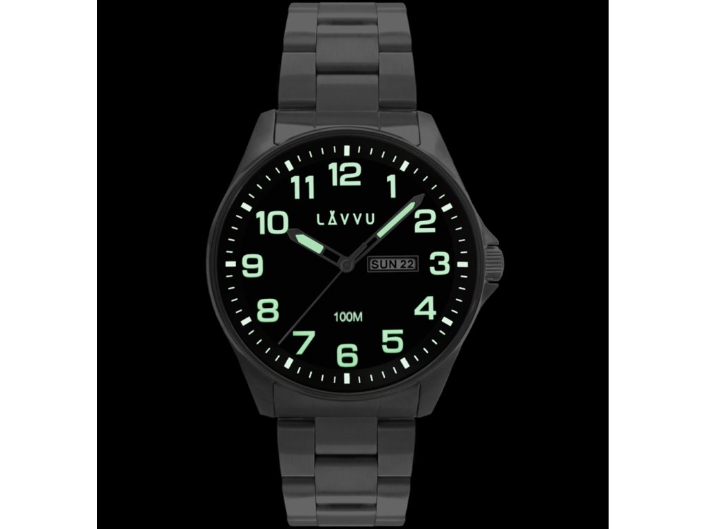 LAVVU Ocelové pánské hodinky BERGEN Black se svítícími čísly