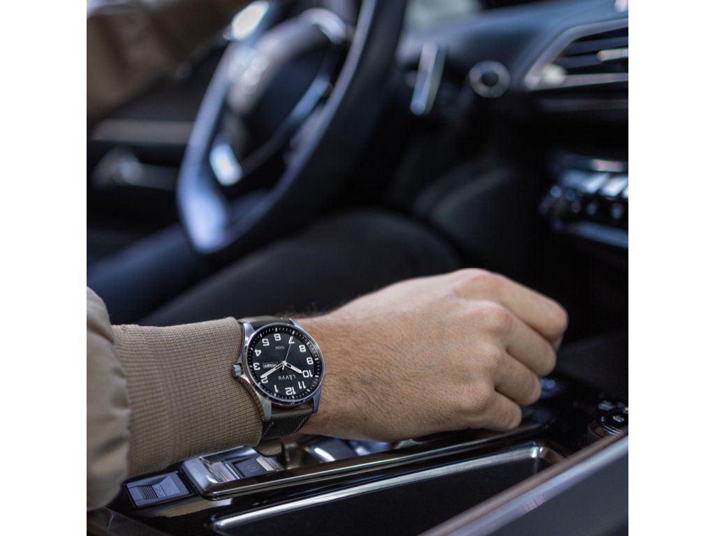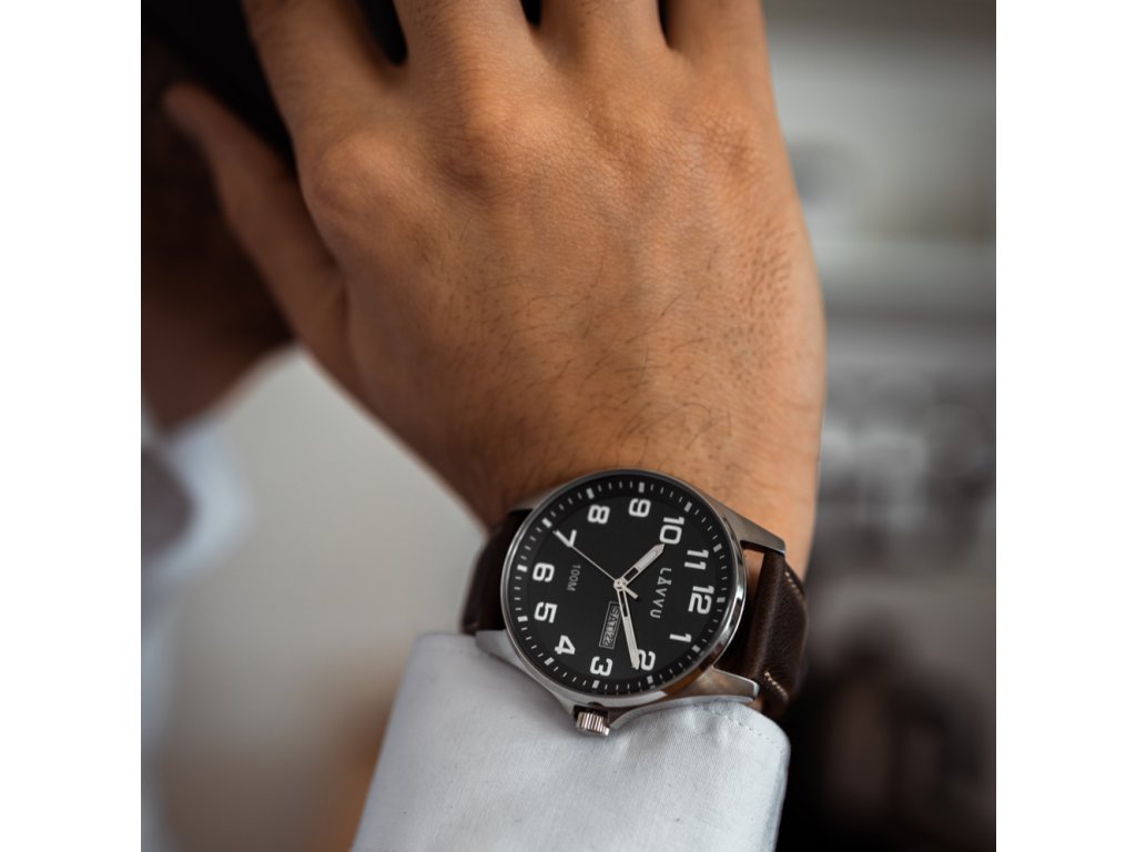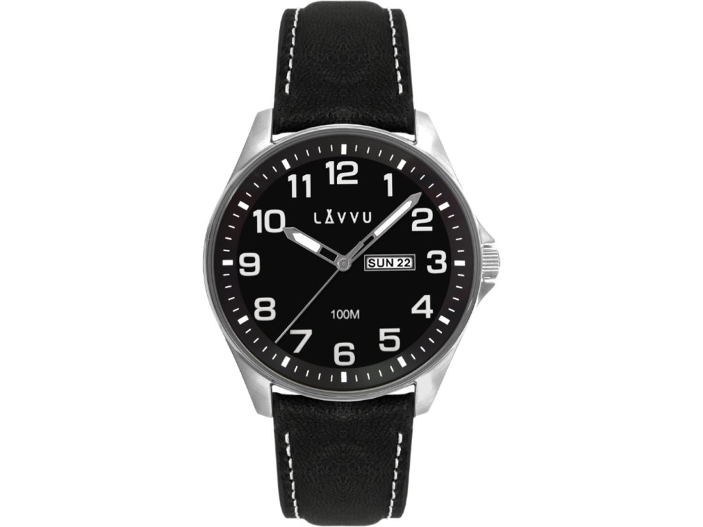 LAVVU Ocelové pánské hodinky BERGEN Black / Top Grain Leather se svítícími čísly