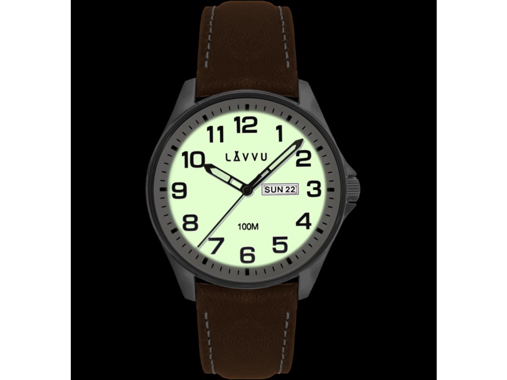 LAVVU Ocelové pánské hodinky BERGEN White / Top Grain Leather se svítícím číselníkem