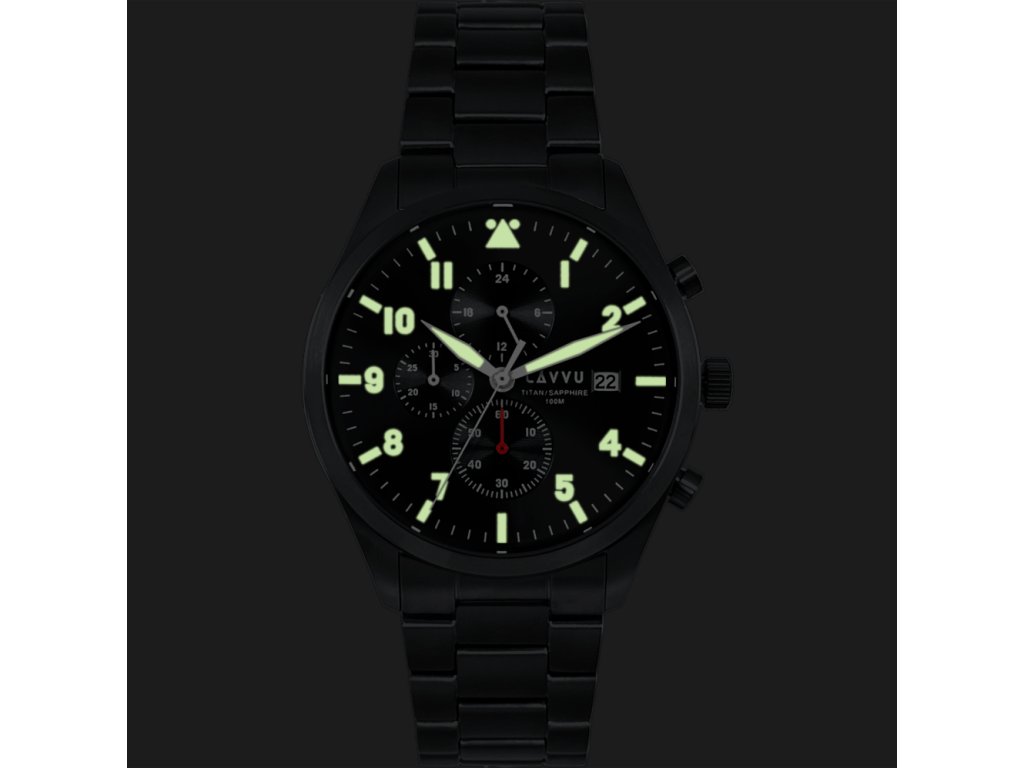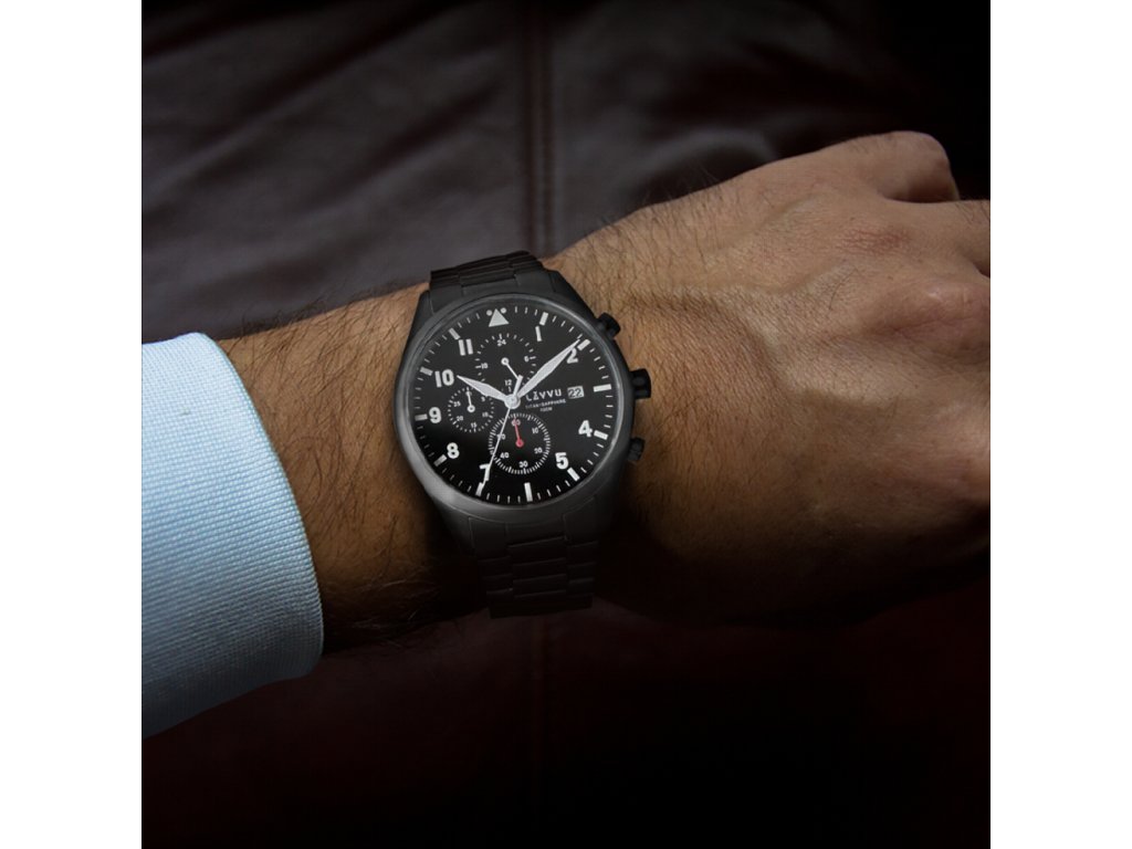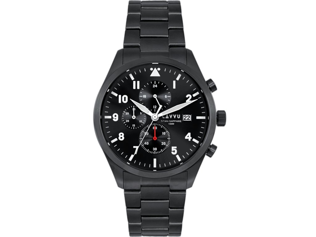 LAVVU Pánské titanové hodinky PILOT Chronograph Black 100M Sapphire