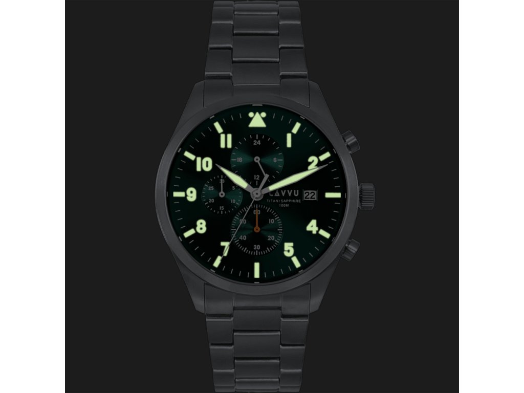 LAVVU Pánské titanové hodinky PILOT Chronograph Emerald Green 100M Sapphire