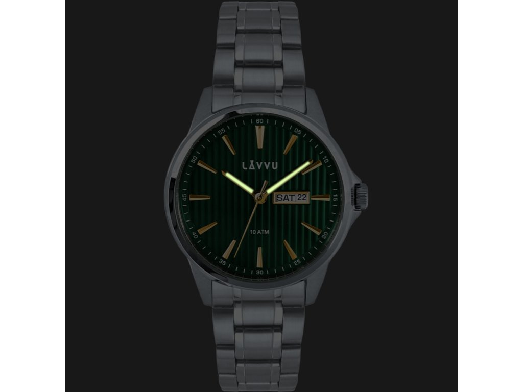 Spolehlivé hodinky LAVVU z nerezové oceli vynikají špičkovou odolností díky prověřeným materiálům a kvalitním komponentům. S vodotěsností 100M zvládnou náročné podmínky i vodní sporty. Číselník s výraznými indexy zajistí perfektní čitelnost a ukazatel data se dnem v týdnu bude vaším praktickým společníkem každý den. Vyměnitelný řemínek je možné zkrátit a přizpůsobit obvodu ruky.Doplňkové parametry